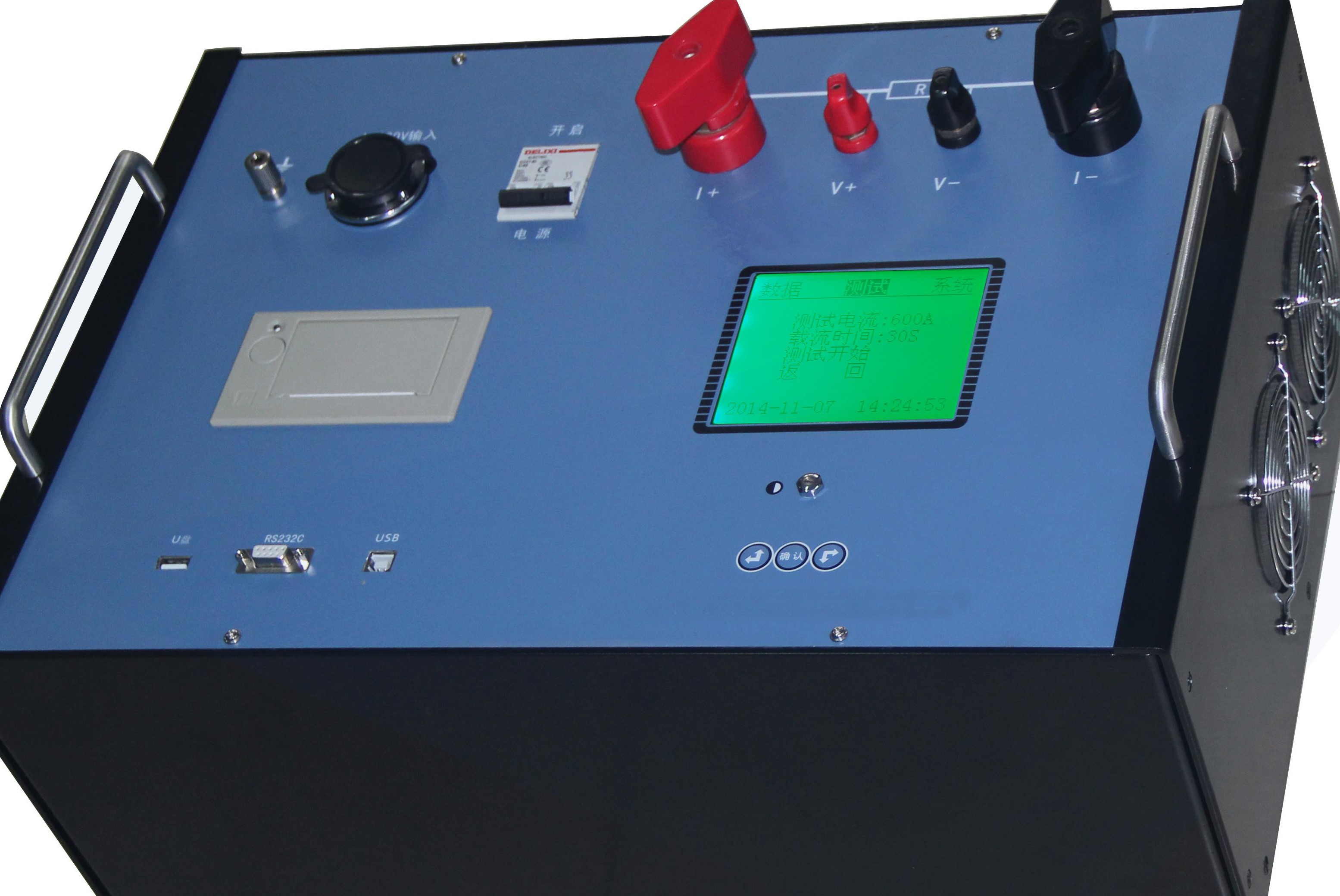 本仪器采用顶开式结构或车载式卧式机箱,多种包装款型,体积小、重量轻、功能强、操作简便,专为生产及现场测场测试人员设计。最高输出电压达10V(为常规仪器的数倍),因此可采用截面较细的测试线,减轻了现场测试人员的劳动强度。大屏幕中文液晶显示,测试电流可选,测试时间可自行整定,测量过程动态提示,测试数据背光液晶显示,适用于不同的工作环境。可保存多达200条测试记录。测试记录可编辑用户信息保存、打印。配用数据管理软件,保存的数据通过RS232或USB传送到计算机(上位机),进行另存、打印、清空等多项操作,或直接由计算机操作测试。保存的文件格式可选择为Word或E